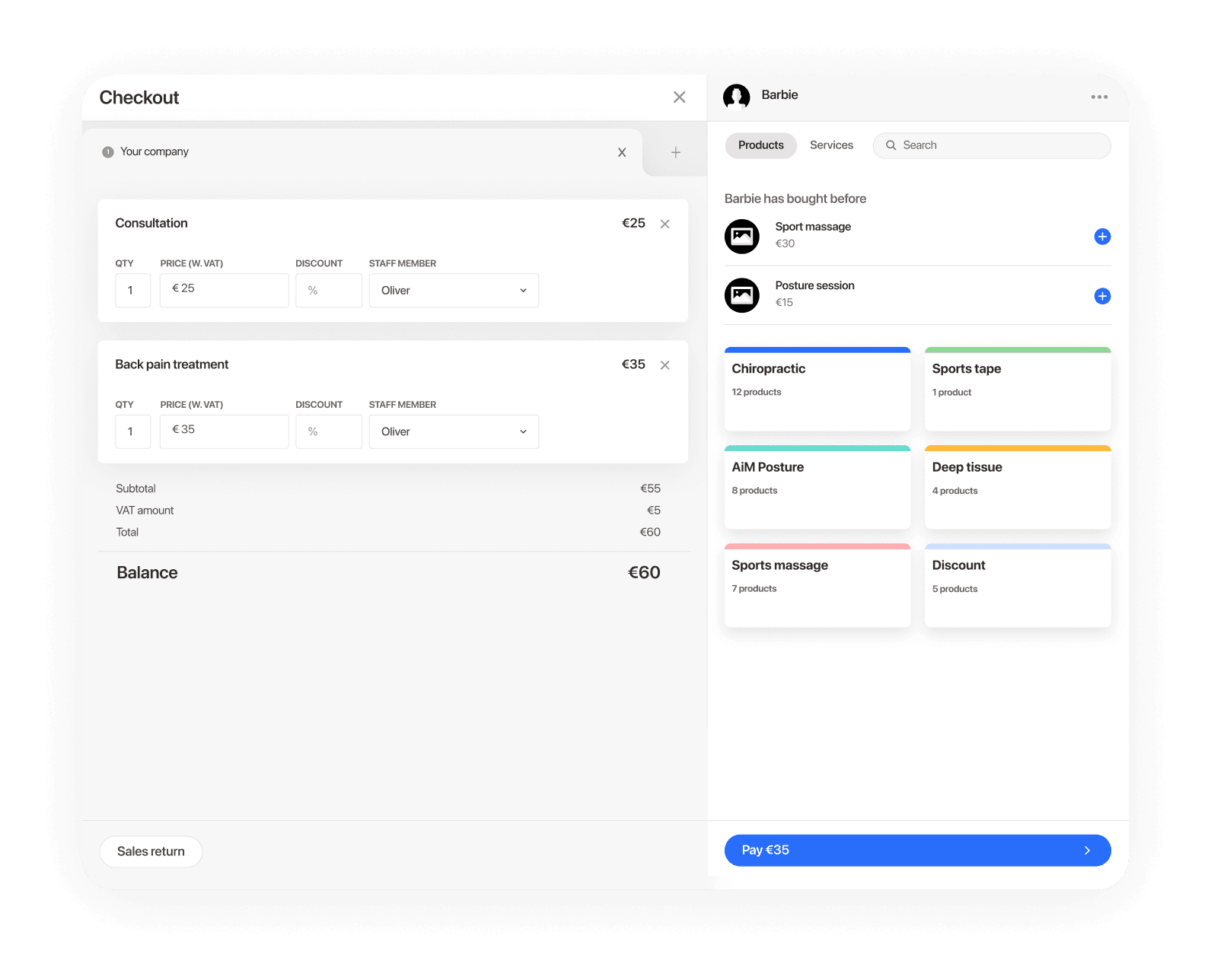Checkout e fatura em 1 clique
